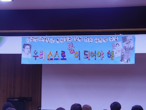[스크랩] <사랑으로 매긴 성적표> 이상석 선생님의 마지막 수업 작성자가람바다|작성시간15.02.09|조회수378 목록 댓글 2 글자크기 작게가 글자크기 크게가 35년 평교사의 정년 퇴임식, 정말 대단합니다이상석 선생님이 제자들과 함께 한 마지막 수업 http://www.ohmynews.com/NWS_Web/view/mov_pg.aspx?CNTN_CD=ME000073106 다음검색 스크랩 원문 : 전국 기간제교사 모임 현재 게시글 추가 기능 열기 북마크 공유하기 신고 센터로 신고 댓글 댓글 2 댓글쓰기 답글쓰기 댓글 리스트 작성자꿈♡생♡도 | 작성시간 15.02.10 내맘속과학선생님추천 게시판으로 옮겨보는건어떨까요? 내용보니 과학쌤이 아니네요...ㅎㅎㅎ 작성자해피 | 작성시간 15.03.07 아, 이분이셨구나. 책 읽었는데. 댓글 전체보기