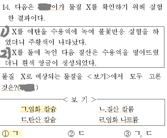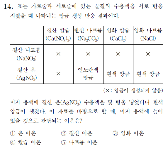 그런데 몇몇 학생이 2)에서 Ag2CO3도 흰색 앙금으로 생성 될 수 있으므로 ㄷ탄산칼슘(CaCO3)도 답이 된다고 얘기 했습니다.