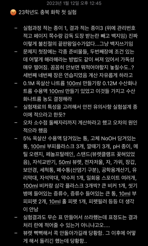 24학년도 충북 화학 실험 대비를 위해 나중에 참고가 될 수 있지 않을까 싶어서 올려봅니다....