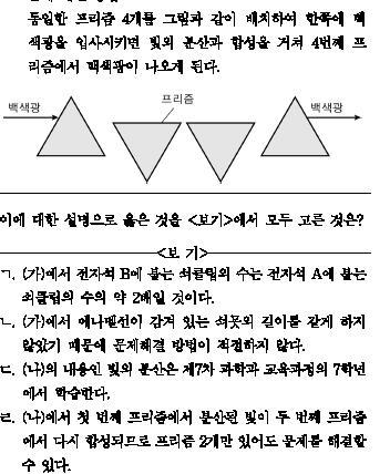 이거 답이 ㄴ, ㄷ 이라는데 ㄹ은 왜 아닌건가요? 프리즘 두개만 있어도 다시 합성되는거 아닌가요?ㅠㅠ