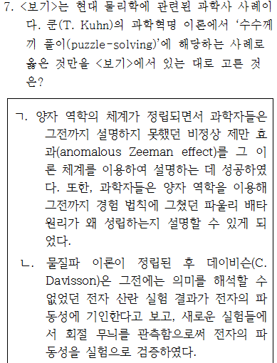 질문2) ㄷ보기가 쿤의 관점에는 어느 단계에 속할까요?