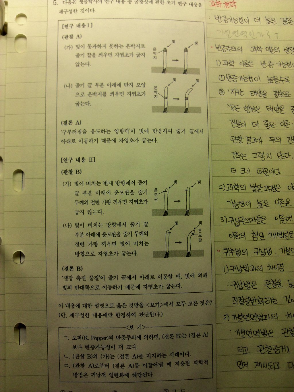 보기 ㄷ은 귀납적 일반화가 아니면 귀추법인가요? 실험을 통해 가설이 아닌 경론을 도출햇기 때문에 가설연역일까요?