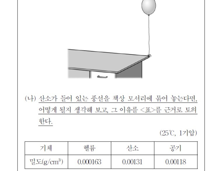 산소를 넣은 풍선이 어떻게 될지 생각해보는 부분에서 밀도라는 개념을 가지고 생각해야 하니 추리 아닌가요??
