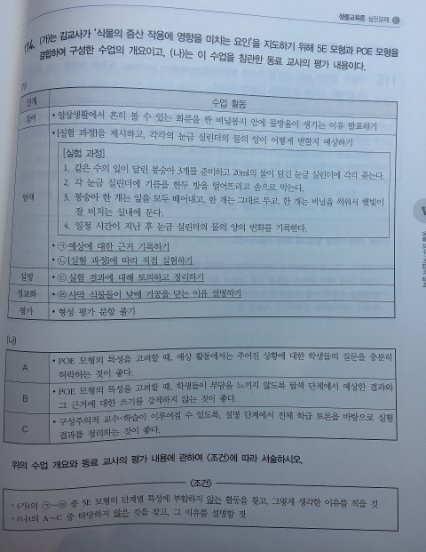 (나)에서 POE수업 중 B부분이 타당하지않은것과 연결할수있습니다