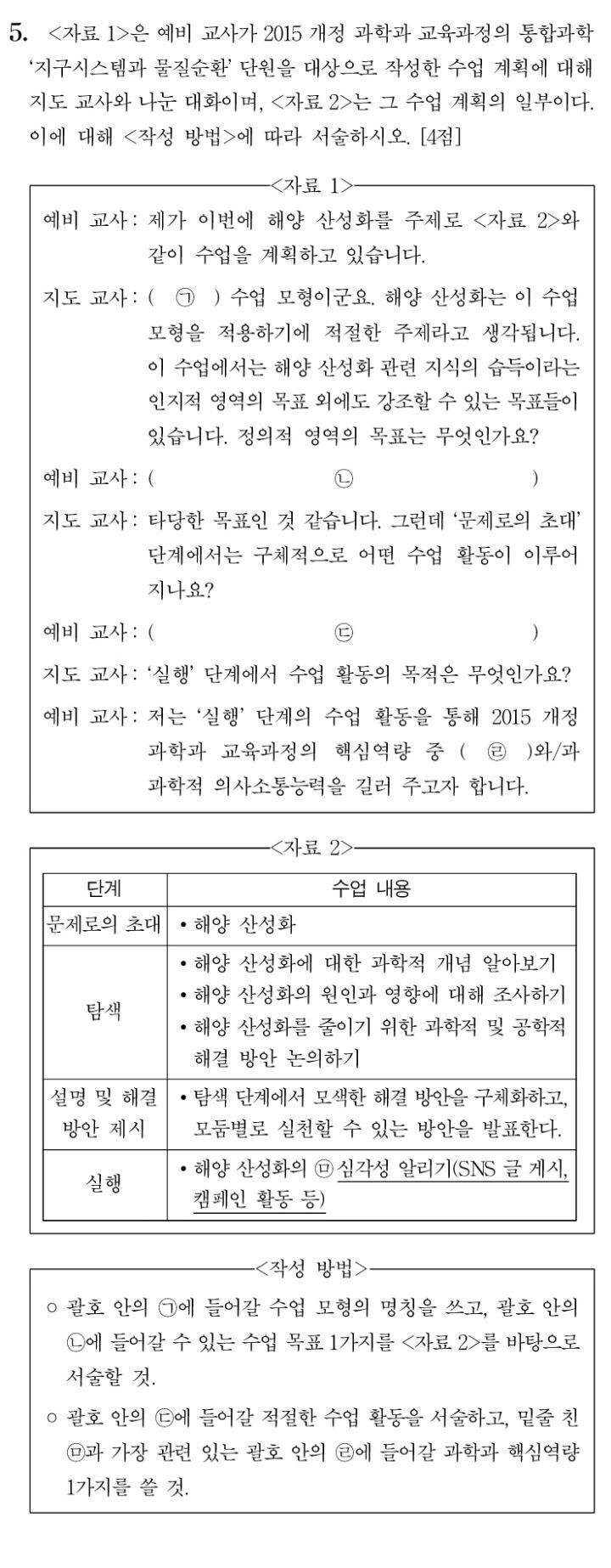답이 과학적 의사소통능력인데요, 저는 실행이라 과학적 참여와 평생학습능력이라고 생각했어요