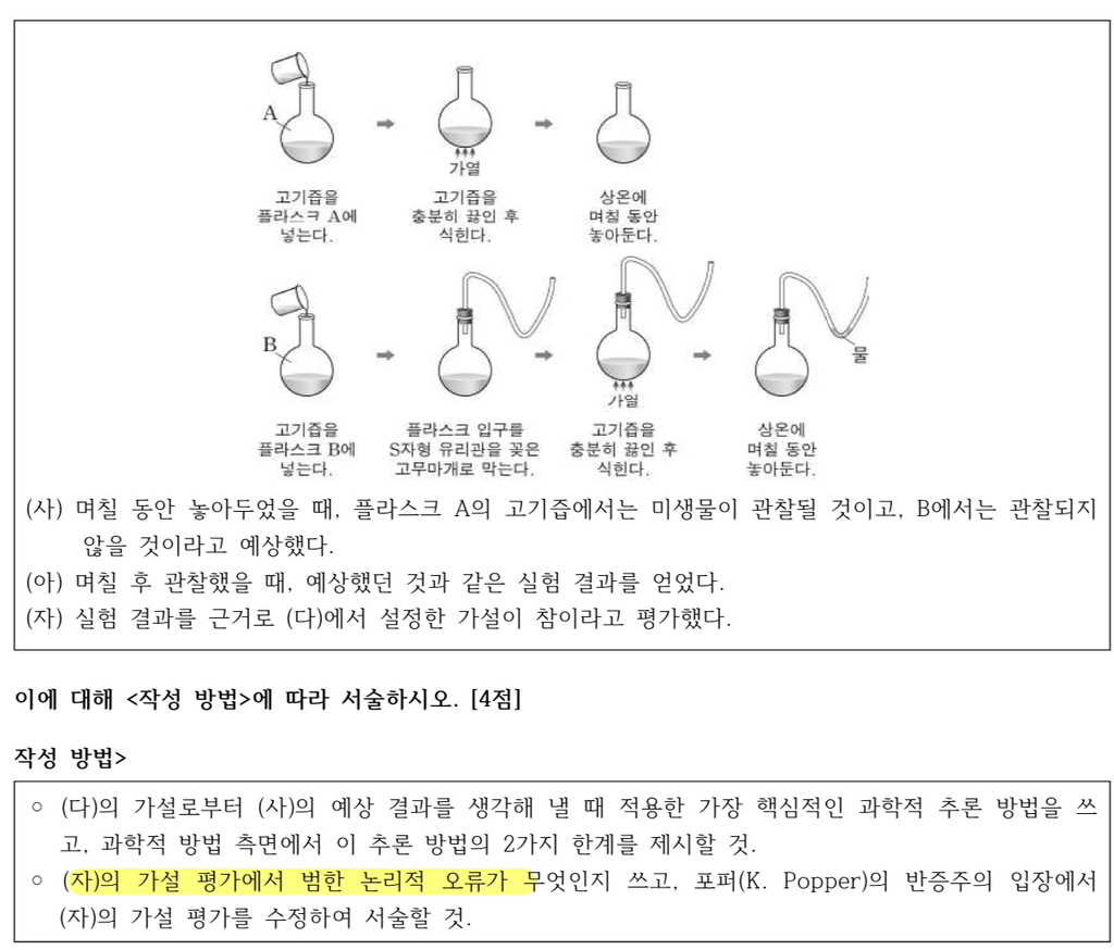 포퍼의 입장에서, 과학 지식에 절대적인 참은 없다. 현재 과학자들이 따르는 과학 지식(이론)들은 단지 아직까지 반증되지 않았을 뿐이다. <<가 제일 핵심이에요. 따라서 포퍼의 입장에서 (다) 가설은 참이 될 수 없습니다.