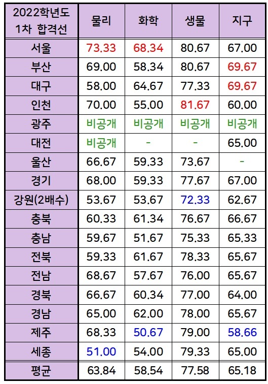 2022학년도 물화생지 1차시험 합격선 정리[완료] 작성자OX_토비|작성시간22.01.01|조회수19,356 목록 댓글 8 글자크기 작게가 글자크기 크게가 2022학년도 물화생지 1차시험 합격선 정리틀린 부분 있으면 알려주세요. 바로 수정하겠습니다.물화생지 회원분들 모두 새해복 많이 받으세요~^^ 다음검색 현재 게시글 추가 기능 열기 북마크 공유하기 신고 센터로 신고 댓글 댓글 8 댓글쓰기 답글쓰기 댓글 리스트 작성자돼지아빠 | 작성시간 22.01.01 세종 물리컷 낮은 이유는 응시자 15명인데 1차에서 2/3만 걸러진거... 작성자소리소리 | 작성시간 22.07.04 저 점수들은 교육학 포함인가요? 답댓글 작성자OX_토비 작성자 본인 여부 작성자 | 작성시간 22.07.04 네~~ 작성자G.Kim | 작성시간 22.09.03 자료 정리 감사합니다 작성자kyoii | 작성시간 22.09.15 감사합니다 댓글 전체보기
