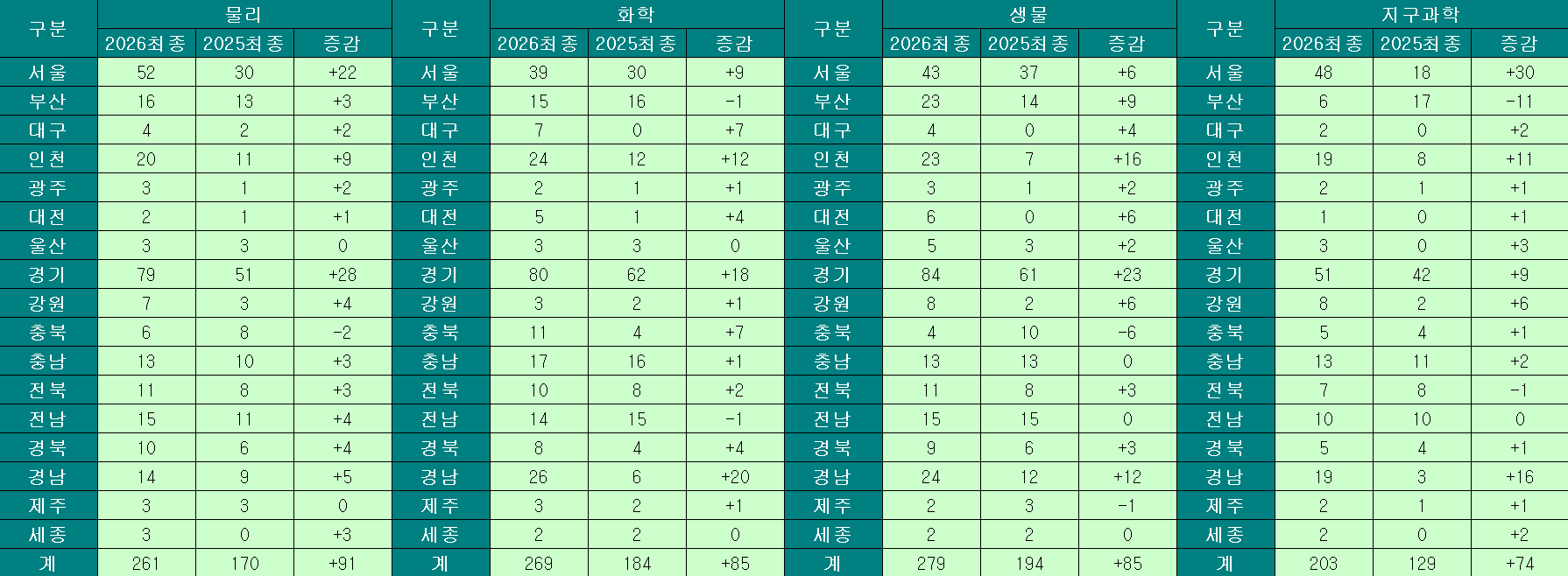 2026학년도 물화생지 최종티오 정리 작성자크키키|작성시간25.10.01|조회수13,405 목록 댓글 13 글자크기 작게가 글자크기 크게가 어느덧 최종 티오가 나왔네요.특히 증감표를 보니 올해가 정말 기회라는 생각이 듭니다.많이 힘드시겠지만 조금 더 힘내시어 원하는 결과 얻으시길 응원합니다^^!! 다음검색 현재 게시글 추가 기능 열기 북마크 공유하기 신고 센터로 신고 댓글 댓글 13 댓글쓰기 답글쓰기 댓글 리스트 작성자달맞이꽃 | 작성시간 25.10.01 정말 수고 많으십니다. 작성자Globe | 작성시간 25.10.02 정리 감사합니다! 작성자열정인내사랑 | 작성시간 25.10.02 감사합니다!! 작성자주당 | 작성시간 25.10.15 감사합니다. 작성자마음가는대로 | 작성시간 25.11.22 물리화학은 결시율 계산하면 최종은 2;1이지만 1차 경쟁율은 아주 낮아지겠네요 웬만하면 2차준비하시겠군요 ... 댓글 전체보기