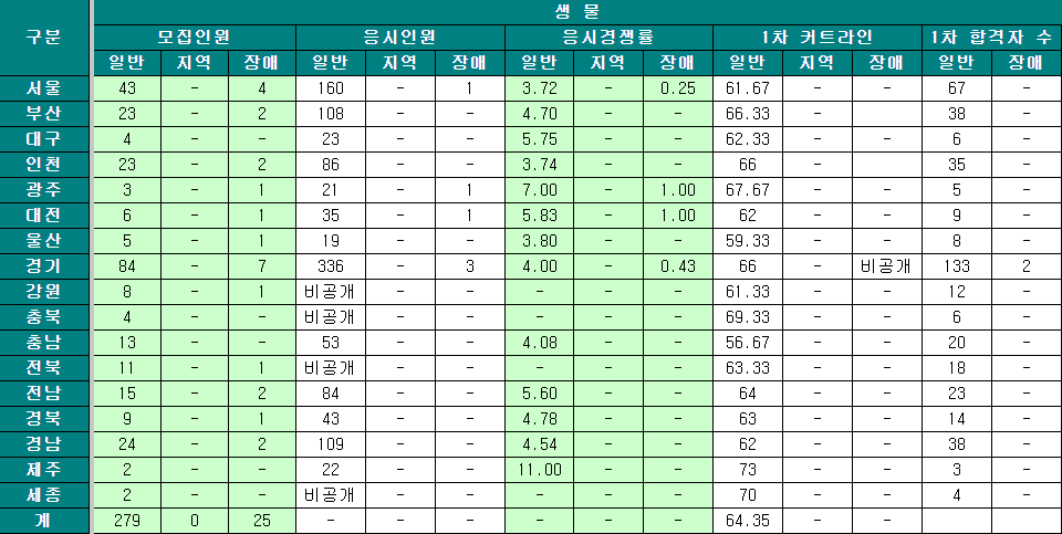 아뇨 장애모집은 장애 전체 내의 티오로 모집진행되는 경우가 많아 일반모집으로 포함되지 않습니다!