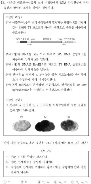 답댓글 작성자이동맨 작성시간 24.06.25 갱갱 또한 ecor1을 사용해 자른 dna단편에 t7 중합효소를 사용해 전사체 b를 얻었다고 하였으니, dna절편의 모양을 생각해볼때 전사체a와 b는 주형가닥이 반대라고 이해해야 그 이후 문제전개가 됩니다.