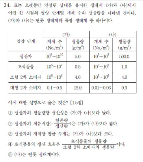 • 답댓글 작성자15생물합격 | 작성시간 15.05.19 여쭤 볼게 있는데요...가를 연못 나를 목장으로 추론한 근거는 생물량으로 한건가요?