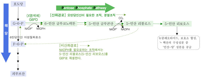 ① G-6-PD : glucose-6-phosphate dehydrogenase, 포도당-6-인산 탈수소효소