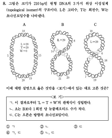 일단 A의 경우 초나선꼬임이 없는 상태로 회전 당 10.5bp의 염기쌍을 가질 것입니다. - 문제푸는데는 굳이 필요하진 않아요.