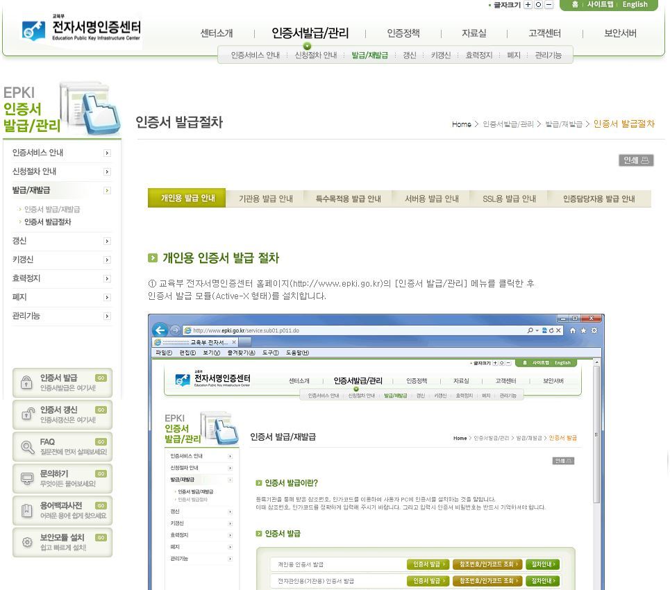 - 일정한 시기마다 인증서를 갱신하여야 합니다. 아니면 다시 위의 과정을 반복해야하는 불상사가.... ^^; 갱신시기가 오면 나이스 접속 시에 알려줍니다.