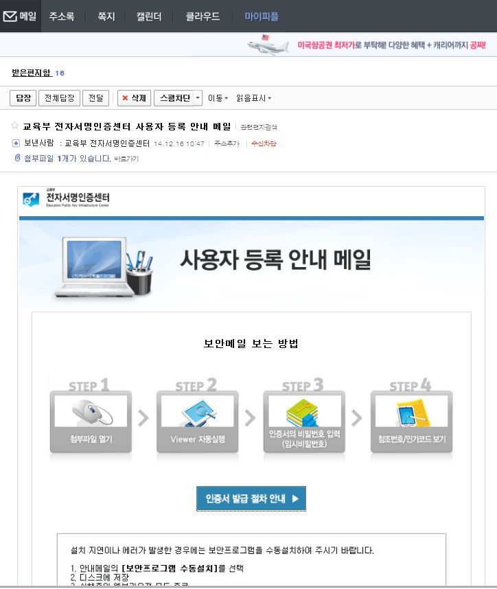 : 각 학교 업무 담당자에게 발급 요청 -> 신청서 작성(사용할 아이디와 임시비밀번호 설정합니다. 잊으면 안되니까 따로 저장저장) ->이메일 보냈다고 문자가 옵니다. ->이 메일로 관련 메일이 옴 -> 안내 문구에 따라 인증서 발급 절차를 따릅니다.