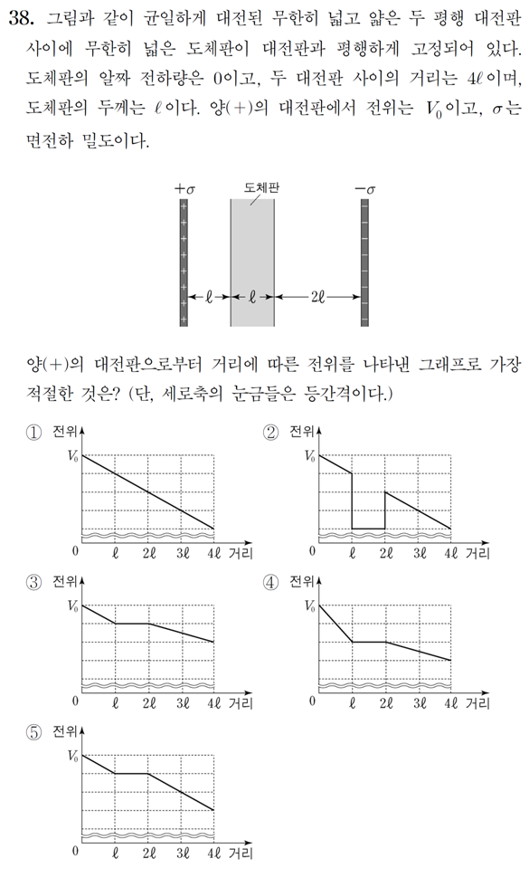[MD]MD 12년 자연과학2 의학(38번) 치의학(41번) 작성자미생|작성시간16.02.23|조회수416 목록 댓글 2 글자크기 작게가 글자크기 크게가 MD & PEET 기출문제 풀이 목록 http://cafe.daum.net/S2000/9jMV/36 다음검색 현재 게시글 추가 기능 열기 북마크 공유하기 신고 센터로 신고 댓글 댓글 2 댓글쓰기 답글쓰기 댓글 리스트 작성자미생 작성자 본인 여부 작성자 | 작성시간 16.02.23 5번 작성자미생 작성자 본인 여부 작성자 | 작성시간 16.03.02 양의 대전판과 도체판 사이의 전기장 크기 σ/ε와 도체판과 음의 도체판 사이의 전기장 크기 σ/ε는 같다.전위는 거리에 비례해서 감소한다. 그리고 도체판 내부의 전기장이 0이므로 도체판의 양단에서 전위가 같다.그러므로 5번이 가장 적절한 그래프이다. 댓글 전체보기