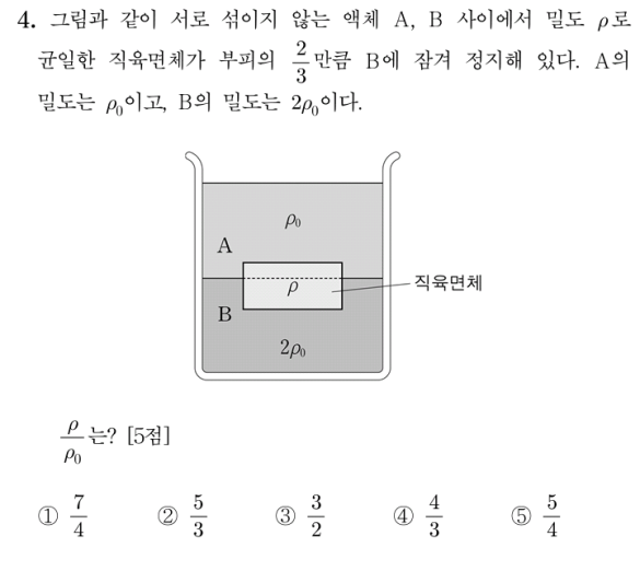 [PEET]PEET 물리추론 14년 4번 작성자미생|작성시간16.02.26|조회수320 목록 댓글 2 글자크기 작게가 글자크기 크게가 MD & PEET 기출문제 풀이 목록 http://cafe.daum.net/S2000/9jMV/36 다음검색 현재 게시글 추가 기능 열기 북마크 공유하기 신고 센터로 신고 댓글 댓글 2 댓글쓰기 답글쓰기 댓글 리스트 작성자미생 작성자 본인 여부 작성자 | 작성시간 16.02.26 2번 작성자미생 작성자 본인 여부 작성자 | 작성시간 16.03.04 힘의 평형 : ρVg = 2(ρ_0)(2/3)Vg + (ρ_0)(1/3)Vgρ/(ρ_0) = 5/3 댓글 전체보기