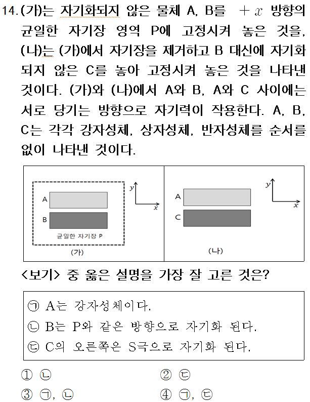 자기장은 +x 방향인데 서로 당기는 방향으로 볼때 당기는 방향은 +-y방향이 되지 않나요...? 제가 뭔가 잘못 생각하고 있는 것 같은데 잘모르겠습니다... 답은 4번입니다.