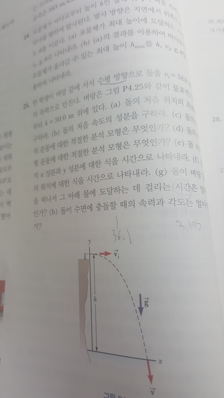 시간은 y성분과 관련이있어서 연직하방에서 두번째공식을 썼는데 맞는건가요??풀이법 알고싶습니다