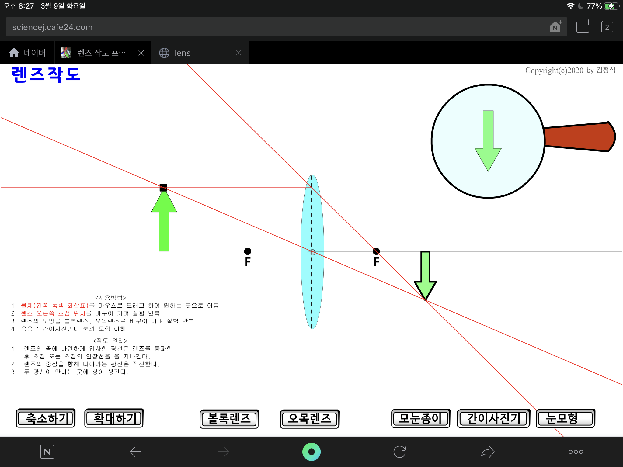 답댓글 작성자PENTADIENE 작성자 본인 여부 작성자 작성시간 21.03.09 또한 렌즈는 동그랗다보니 보는 위치에 따라 상이 '다른 모양'으로 보일 수는 있겠지만 렌즈작도와 같이 평면 일직선상이라는 조건을 염두해둔다면 오개념을 해소하는데 도움이 되겠습니다.