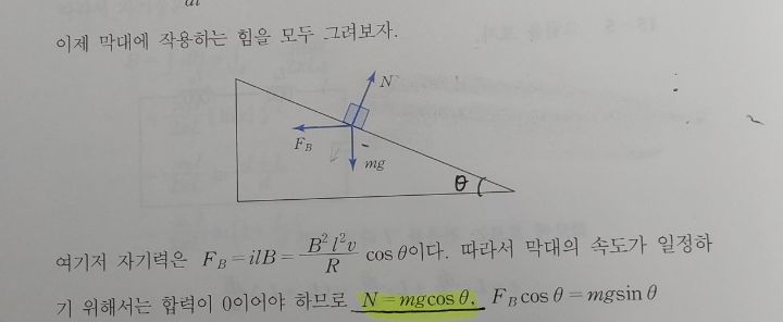 그림과 같은 상황에선 빗면에 대해 수직한 힘 성분이 중력과 자기력 둘다 있고 그걸 합친게 수직항력 아닌가요?