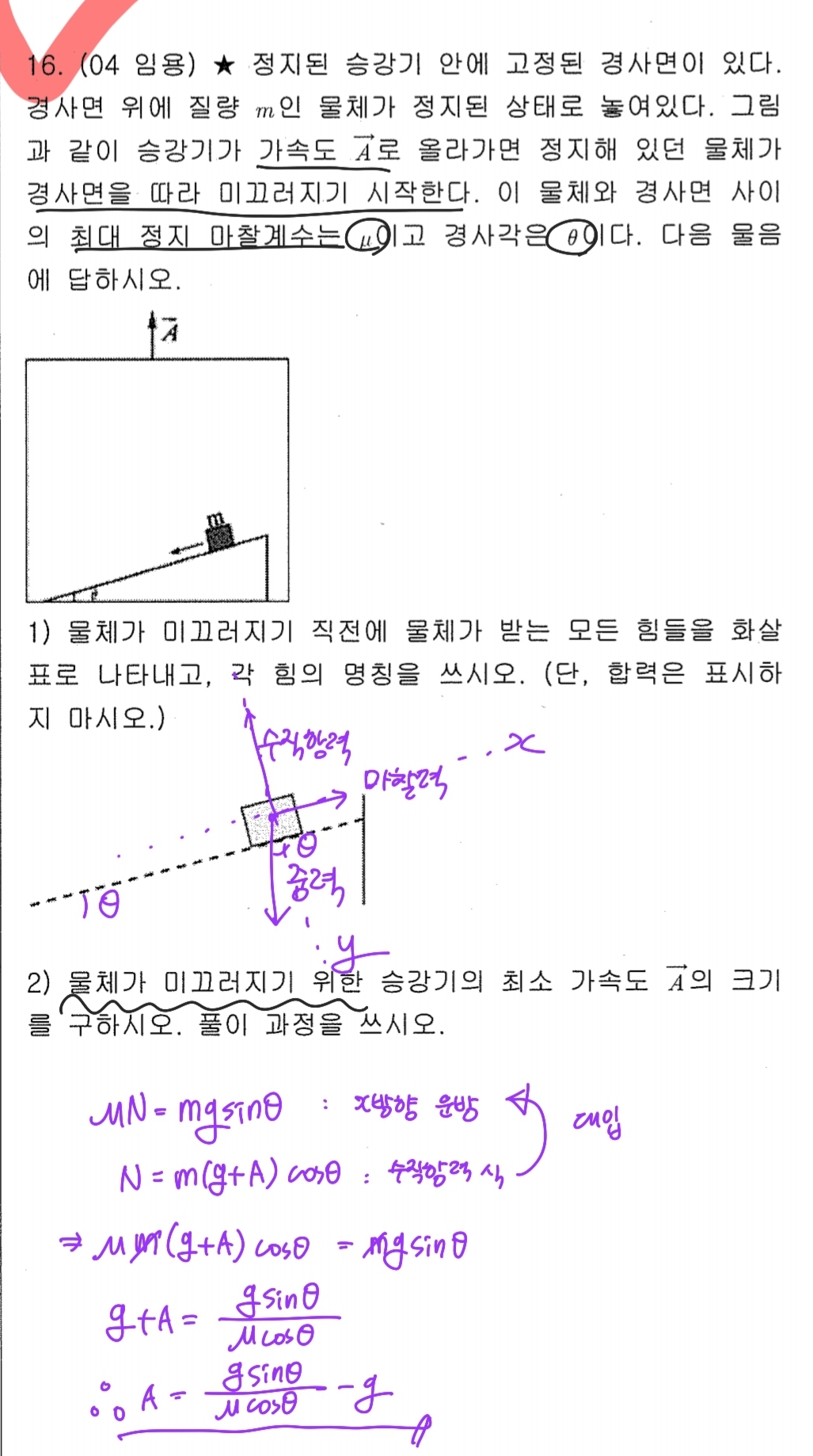 엘리베이터가 움직이면 중력은 mg 로 유지되고 수직항력이 증가한다고 생각했습니다