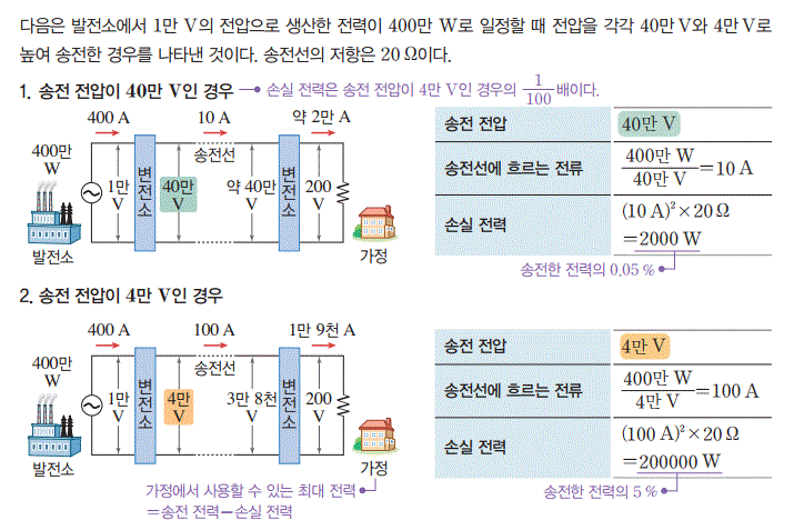 그래서 변전소 2의 1차 코일에 걸리는 전압이 40만 V - 200 V인 약 40만 V라 교과서에 나와있는 것입니다.