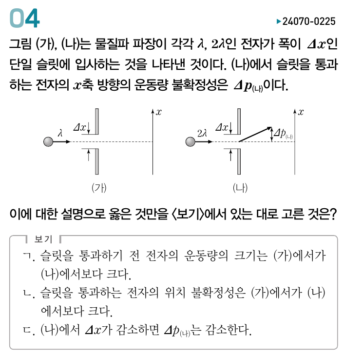 이 문제에서 ㄷ 보기가 운동량 불확정성이 증가하는 것까지는 알겠는데,
