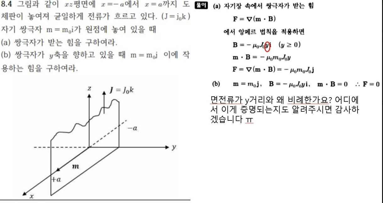 저는 J가 면전류라고 생각해서 2분에 뮤제로 j제로 가 될 것 같은데 2분에도 없고 y랑 비례하다고 하는게