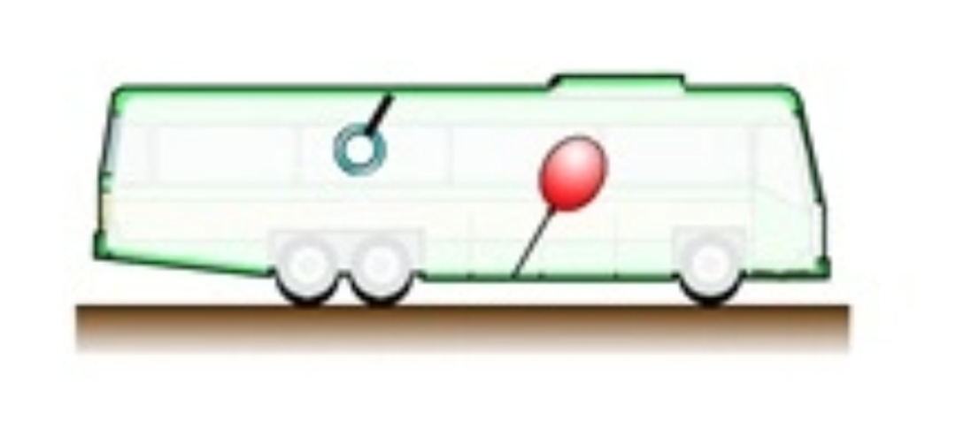 버스 외부에서 보면 관성력만 제외하고 풍선에 알짜힘이 오른쪽으로 작용해서 버스와 함께 가속합니다. -