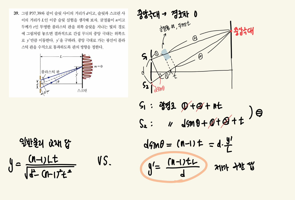 이중슬릿+매질 문제인데요..