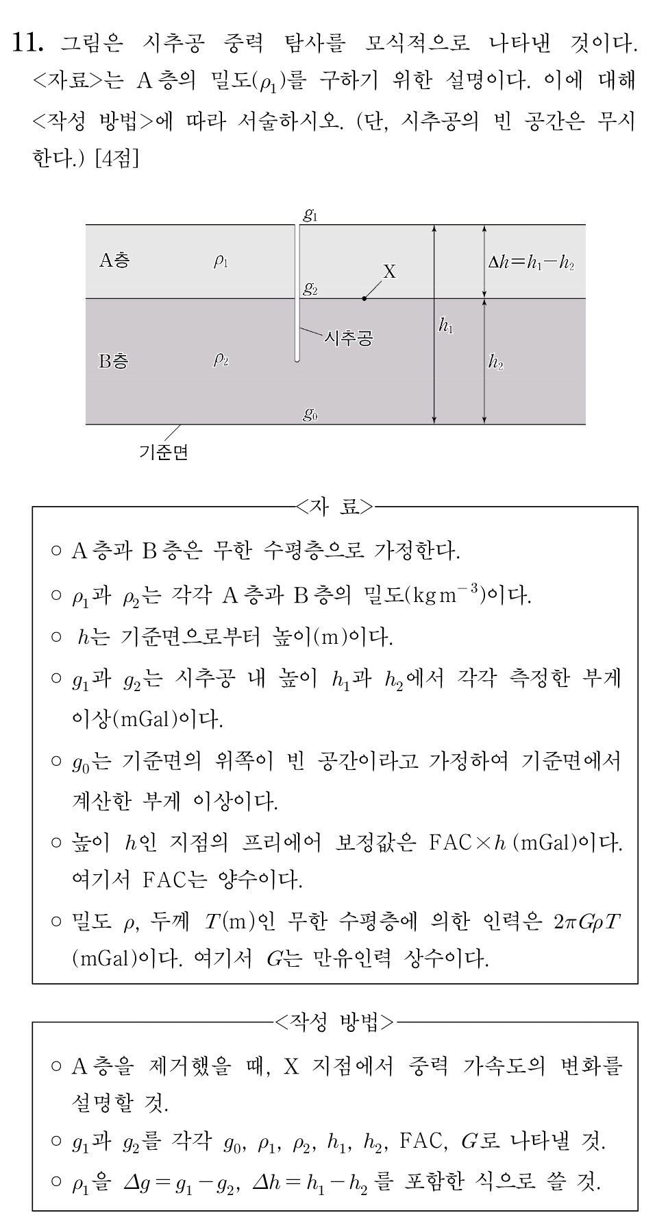 지구과학에서 D점의 중력 이상을 구할때는 H가 위로 당기는걸 고려해줘서 헷갈립니다...