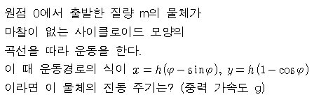 작성자피흘리는겨울 작성시간 09.10.16 싸이클로이드 곡면은 응용이나 뭐 그런것 한 번도 본적이 없습니다. 파울스 예제 형태나 님의 문제 형태나 동일한 형태고 아마 답도 같게 나올꺼에요.. 풀이보면 참 이상하고 이거 아닌데 싶으실텐데.. 제가 봐도 저건 아닙니다. 다만 저렇게 풀어도 답은 나온다는 거죠... 설마 문제에 싸이클로이드곡면을 만들라는 것은 안나올테고 싸이클로이드함수는 수학자가 발견하고 실제 응용된적도 없고 발전된 것도 없기때문에 시험과는 거리가 멀 것 같다는 개인적인 생각입니다.