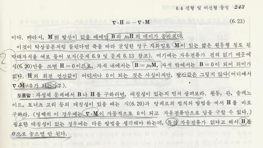 작성자푸른빛섬광 작성자 본인 여부 작성자 작성시간 10.07.09 피겨님 의 마지막 말씀은 조금더 고려해봐야 할거 같습니다.왜냐면 대칭성이 있을때 는 발산M이 반드시 0 이 지만(식 6.23에 따라서 식 앞의 발산H가 0 이 되므로)