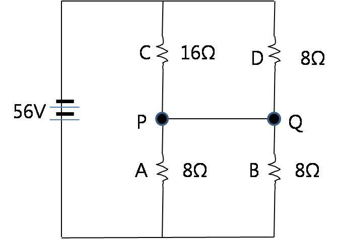 (2) PQ점 사이에서 전류가 흐르는가? 흐른다면 전류의 방향과 세기는 얼마인가?
