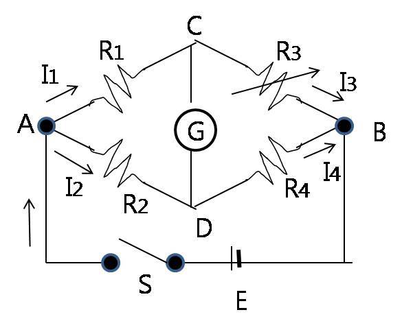 휘트스톤 브릿지에서 R₁x R₄= R₂x R₃일 경우 전위차가 없게 되고