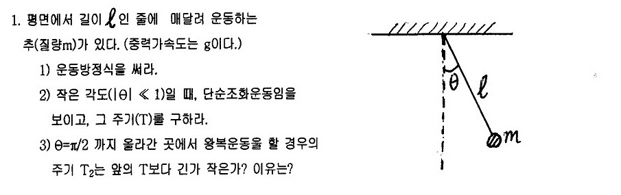 (1) sin이 들어간 식 자체가 운동방정식이라 볼 수 있습니다.