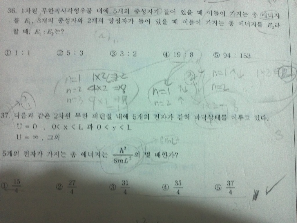 작성자닐스보어 작성시간 13.07.12 37은 스핀 고려해서 한 상태에 두개 씩 들어가서 계산하면 되겠는데요. 전자들이 차곡차곡 쌓인다고 들뜬 상태가 되는 것은 아니죠..