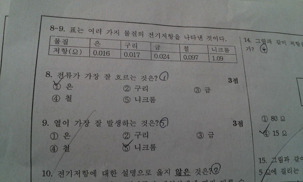 작성자물리쌤 작성시간 13.10.02 이미 낸 문제니 다른 조건(직렬이니 병렬이니) 다 배제하고 생각해야 할 듯해요~~~~~~ 직렬일때는 저항이 클수록, 병렬일 때는 저항이 작을수록 열이 많이 생긴다는 것은 다른 물질이 연결되어 있을 때이니 이문제에 적용할 수 있는 것은 아닌듯... 같은 전압의 전지에 물질만이 연결되어 있다고 보면 저항이 작아야 열이 가장 많이 생기지요.