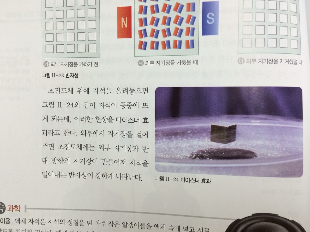 어떤 책에서는 반자성의 효과가 나타나서 자석 위에 뜨는 것이라고 돼 있고,