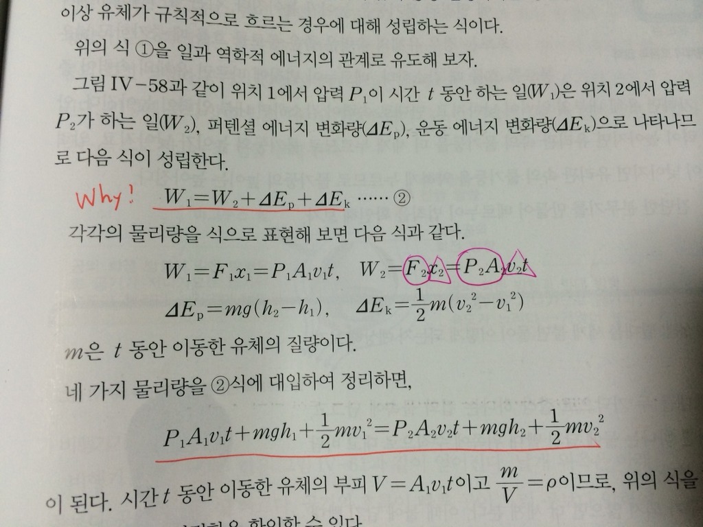 유체가 받은 일이 운동에너지와 위치 에너지 변화가 되었다고 하잖아요...