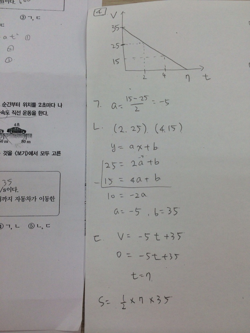 등가속도운동 문제 좀 풀어주세요~ 작성자반짝이는별|작성시간14.07.28|조회수728 목록 댓글 2 글자크기 작게가 글자크기 크게가 이렇게 풀었는데, 답이 하나도 없어요 ㅜㅜ 다음검색 현재 게시글 추가 기능 열기 북마크 공유하기 신고 센터로 신고 댓글 댓글 2 댓글쓰기 답글쓰기 댓글 리스트 작성자physedu | 작성시간 14.07.28 2초일때 속력을 20으로 잡아야하는데 이부분에서 틀린거 같습니다. 2초일때 속력을 20으로 잡고 가속도가 -5임을 알고 그래프 그리면 나와요 괄호안에 (2,25) (4,15)이거는 2초일때 50/2를 하고 2~4초일때 30/2를 하신거 같은데 그렇게 되면 1.5초일때 25이고 3초일때 15라고 해석해야 되요 작성자스윙칩 | 작성시간 14.07.28 답은 3번이네요! 이미지 확대 댓글 전체보기