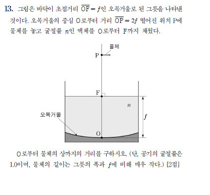 작성자imax 작성시간 14.11.28 이 문제 보정한다고 생각하지 마시고 처음에 공기에서 물로 들어갈때 굴절구면 쓰고 그리고 거울 반사 쓰고 굴절구면 한번더 쓰면 되는 간단한 문제입니다. 주의 할점은 굴절 구면을 지날때와 거울에서 반사되는 상을 다시 물체로 보고 계산하는데 이때 거울에서 반사되는 상이 물 밖에 맺히니까 허물체로 계산해 주는것만 주의하시면 되요.