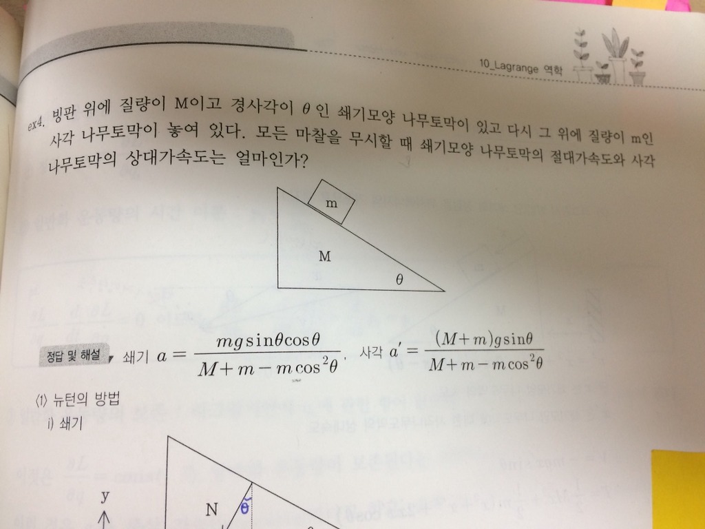 빗면이 미는 옆방향 속도 + 빗면 아래 방향의 속도 벡터합을 넣은 게 맞죠? 그럼 실제로 나무 토막이 빗면을 나란하게 미끄러지지 않고, 저 옆 방향으로 약간 떠서 내려가나요?