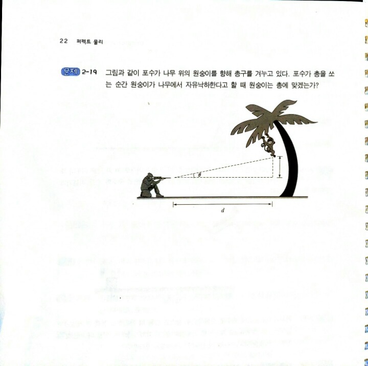 아래와 같은 포수와 원숭이 문제 풀 때 퍼펙트 물리의 풀이를 보니