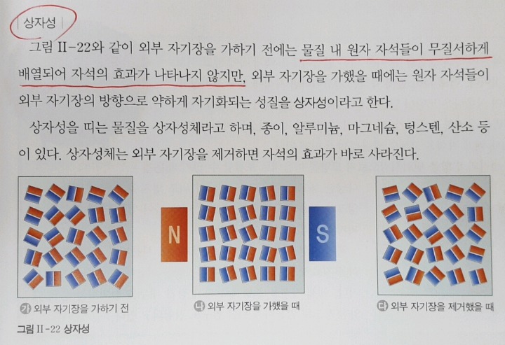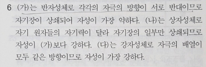 2. (가)의 경우 자기장이 없을 경우를 말하는거 같아요. 무질서한 배열이 아니라 서로 상쇄되는 배열이라 반자성체인것 같습니다. -