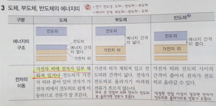 "가전자띠에 전자가 일부 채워져 있거나."라는 말은