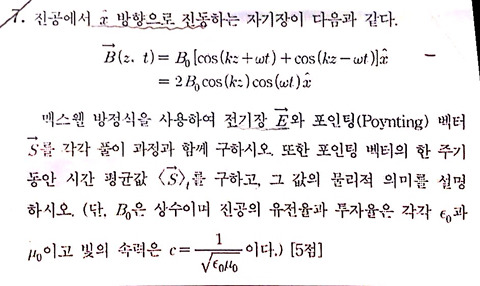 작성자운좋은올빼미 작성시간 17.11.09 맥스웰 방정식을 사용하라는건 컬B를 사용하라는 거구요, 컬B로 시간적분하셔서 전기장 구하시면 돼요.