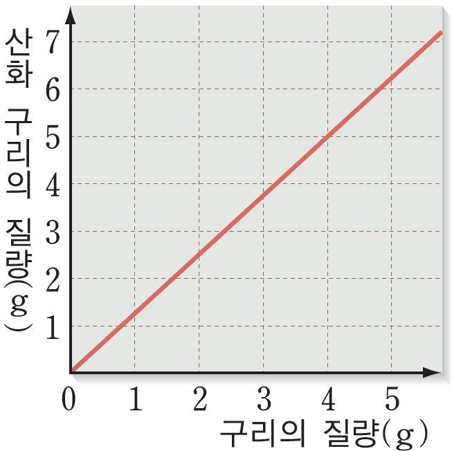 마찬가지로 구리2g에 산화구리 2.3g 쯤 위치하고 있는데 마찬가지로 정수비가 아니기에 구리:산화구리 질량비로 설명되지 않는거죠??
