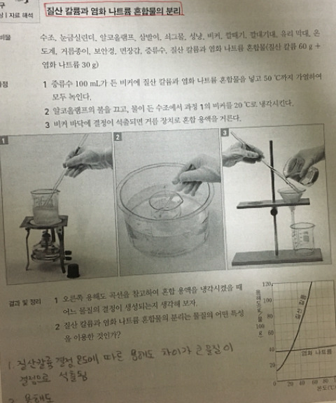작성자2018합격하긔 작성자 본인 여부 작성자 작성시간 18.01.13 교과서는 중학교 수준으로만 다뤄서 그냥 분별결정으로만 한 것인가봐요ㅜㅜㅜ가르칠 때는 용해도 차이를 이용하면 고체 혼합물을 분리할 수 있다 정도로 하는것도 나쁘지 않겠네요~